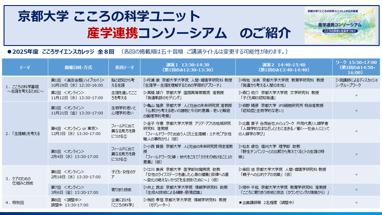 ■2025年度 サイエンスカレッジ テーマ「こころ」の生涯を考える