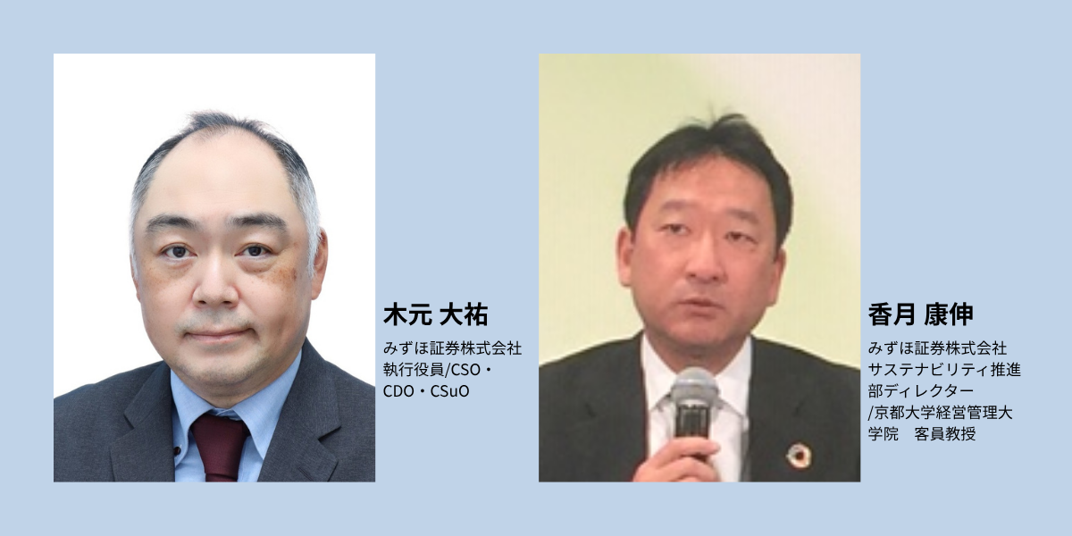「金融機関が取り組むサステナビリティ」 みずほ証券株式会社 執行役員/CSO・CDO・CSuO 木元 大祐 |