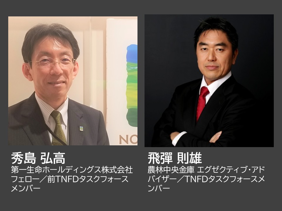 #自然 #自然資本 #生物多様性 #TNFD #背景と経緯 #国際潮流 #TCFDメンバー #投資家目線 講義1 ⾃然関連財務情報開⽰タスクフォース(TNFD)の最近の動向 秀島 弘高氏(第一生命ホールディングス株式会社 フェロー/前TNFDタスクフォースメンバー) 飛彈 則雄 氏(農林中央金庫 エグゼクティブ・アドバイザー/TNFDタスクフォースメンバー) 講義2 投資家サイドから⾒たTNFDへの対応 矢野 節子氏(アセットマネジメントOne株式会社 運用本部 リサーチ・エンゲージメント部 ESGアナリスト) 質疑応答・ディスカッション 秀島氏 飛彈氏 矢野氏 京大オリジナル (終了後、名刺交換会を予定しています) ・秀島 弘高 氏:1989年日本銀行入行、バーゼル銀行監督委員会関連事務に通算15年間従事。2021年4月農林中央金庫エグゼクティブ・アドバイザー(国際規制担当)、2022年11月 TNFDタスクフォースメンバー。TNFDの始め方、金融セクター向けガイダンス、バリュー・チェーンに関するガイダンス、移行計画に関するガイダンス案の作成等に関与。2025年8月より現職。「バーゼル委員会の舞台裏─国際的な金融規制はいかに作られるか」(金融財政事情研究会,2021年5月)著。 ・飛彈 則雄 氏:1993年日本銀行入行。政策委員会審議委員スタッフを務めたほか、日系G-SIB(海外業務)、日系大手証券会社、外国銀行・外国証券在日拠点等の金融機関に対するモニタリング業務に従事。また、金融庁(日本銀行から出向)では、保険監督者国際機構(IAIS)への参加をつうじグローバルに活動する保険会社に対する新たな資本規制の枠組み作りに参画。さらに、国際通貨基金エコノミスト(米国ワシントンDC)や日本銀行ニューヨーク事務所次長(米国ニューヨーク)等、海外勤務も経験。2025年7月からTNFDタスクフォースメンバー ・矢野 節子 氏:アセットマネジメントOneにて、運用のサステナビリティトランスフォーメーションを推進。1996年から20年以上、株式のセクターアナリストとして、主に水産・農林、食品、飲料、小売等の企業分析及びエンゲージメントに従事。2024年4月より現職。社内のTNFDワーキングチームで生物多様性、自然資本に関する知見も深めている。 |