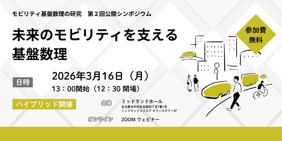 | モビリティ基盤数理の研究 第2回公開シンポジウム 未来のモビリティを支える 基盤数理 |